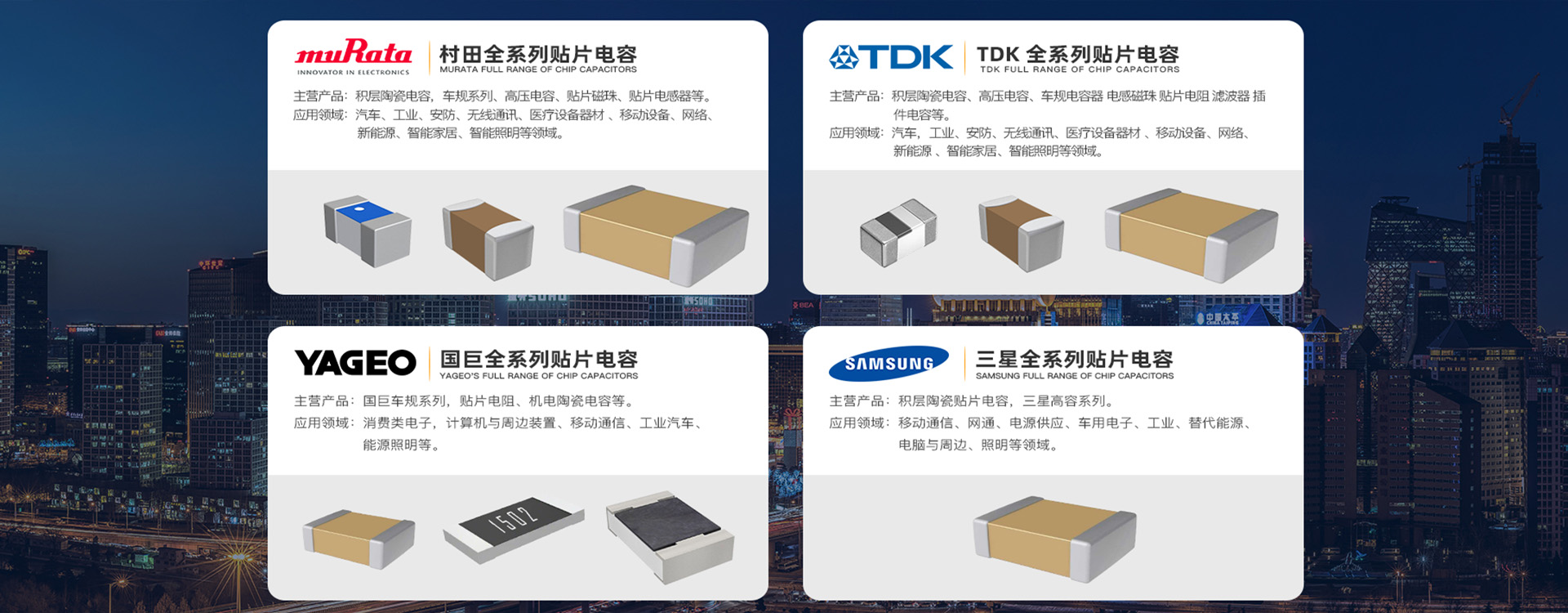深圳市廣運達能電子有限公司專業從事電子元器件代理銷售業務,于2002年正式注冊成立,總部位于中國香港。主要經營范圍:電容、電阻、電感、磁珠、車規電容、車規電阻、車規電感、車規磁珠、高精密電阻、大功率電阻、千分之五電阻、千分之一電阻、高壓電容、高頻電容、鋁電解電容、鉭電容、二三極管、晶振、熱敏電阻、壓敏電阻、保險絲。作為代理商,我們提供有競爭力的價格并保證我們產品的正品,我們還提供技術支持和增值服務,以滿足您的特定要求。依靠科技發展,不斷為用戶提供滿意的高科技產品,是我們始終不變的追求!憑借龐大的庫存和與世界知名制造商的強大合作伙伴關系,我們提供全方位的電子元器件,滿足智能制造、汽車電子、通信系統、工業控制、AI智能、安防系統和醫療設備等不同行業的需求,以清晰的組織架構支撐業務的高效運營,在大中華、東亞及東南亞地區實現資源的整合配置,在區域及城市做到快速反應,以產品質量和精湛的技術服務支持受到了用戶的一致好評。我們主打的代理品牌包括:村田(muRata)、TDK、太誘(TAIYO)、三星(SAMSUNG)、國巨(YAGEO)、AVX、風華(FH)、華新科(WALSIN)、厚聲(UniOhm、ROYALOHM)。我們對質量、有競爭力的價格和無與倫比的客戶服務的承諾使我們成為業內值得信賴的代理商。通過與我們合作,您可以敬請期待!
